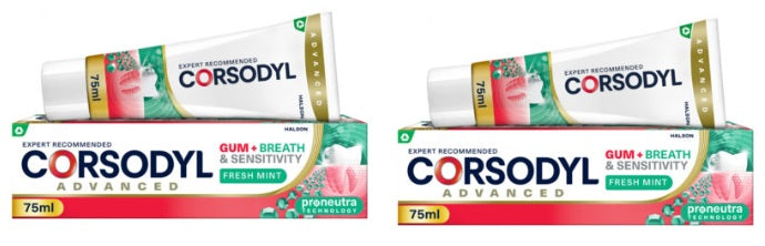 Corsodyl Gum+ Breath & Sensitivity Toothpaste is designed to support your oral health by helping to reduce plaque and maintain fresh breath. It features Pro-Neutra™ Technology, which helps neutralise odour-causing bacteria, and is formulated for individuals with sensitive teeth.