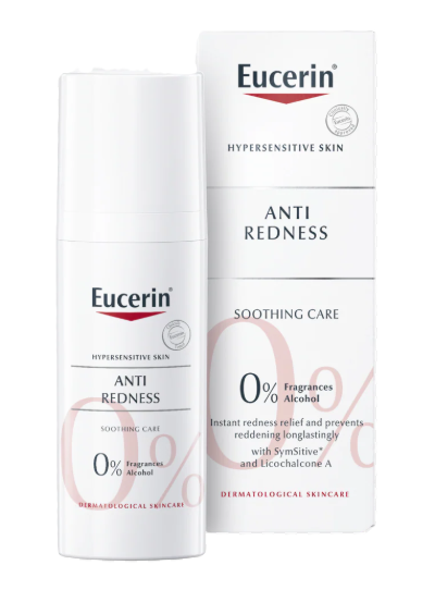 Eucerin Anti-Redness Soothing Care is a gentle daily moisturiser formulated for sensitive, easily irritated, and redness-prone skin. It is designed to provide lasting hydration while helping to calm the appearance of redness and improve overall skin comfort.