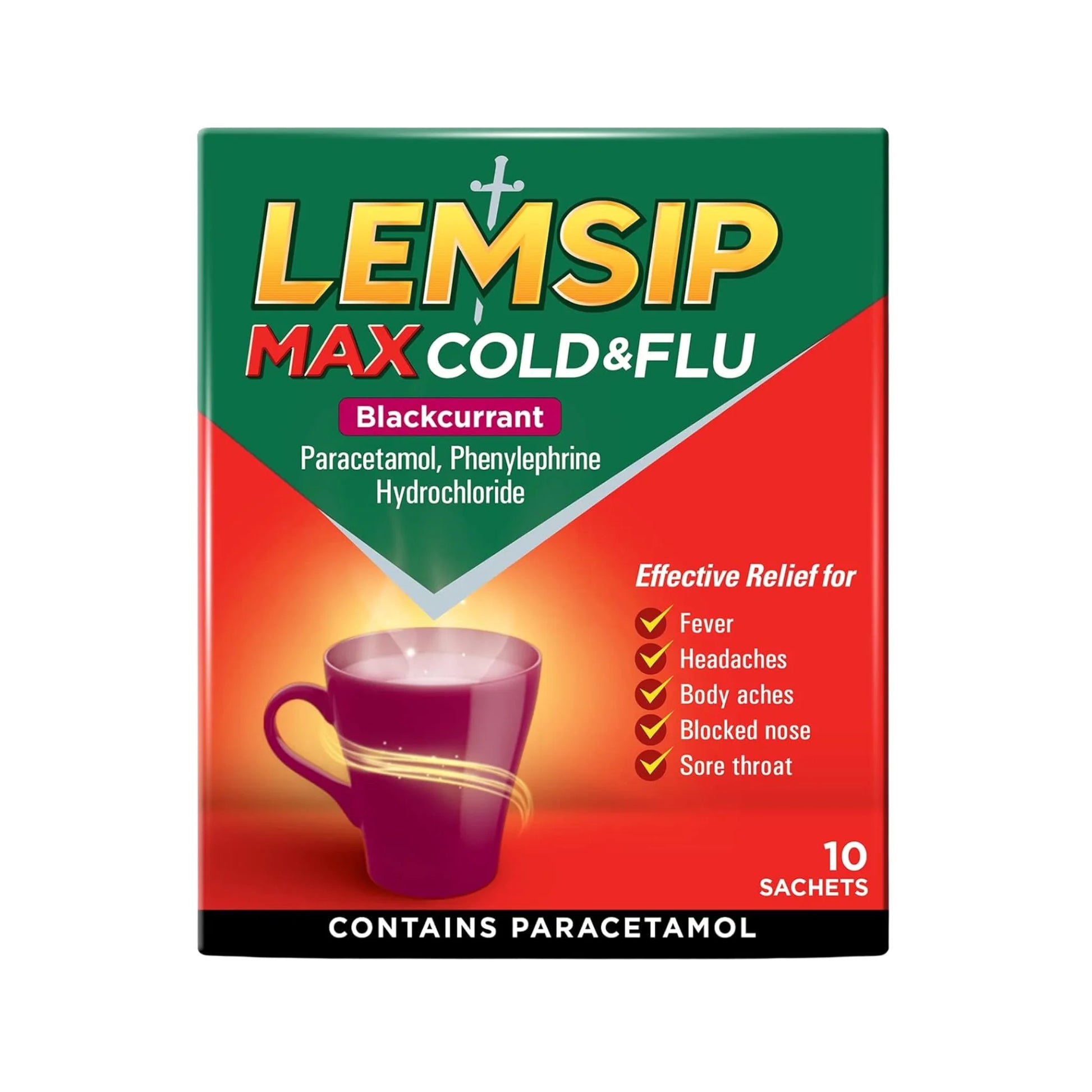 Lemsip Cold & Flu Blackcurrant comes in convenient sachets, designed to be mixed with hot water for a soothing drink. Each box contains 10 sachets, with secure packaging to preserve freshness and quality.