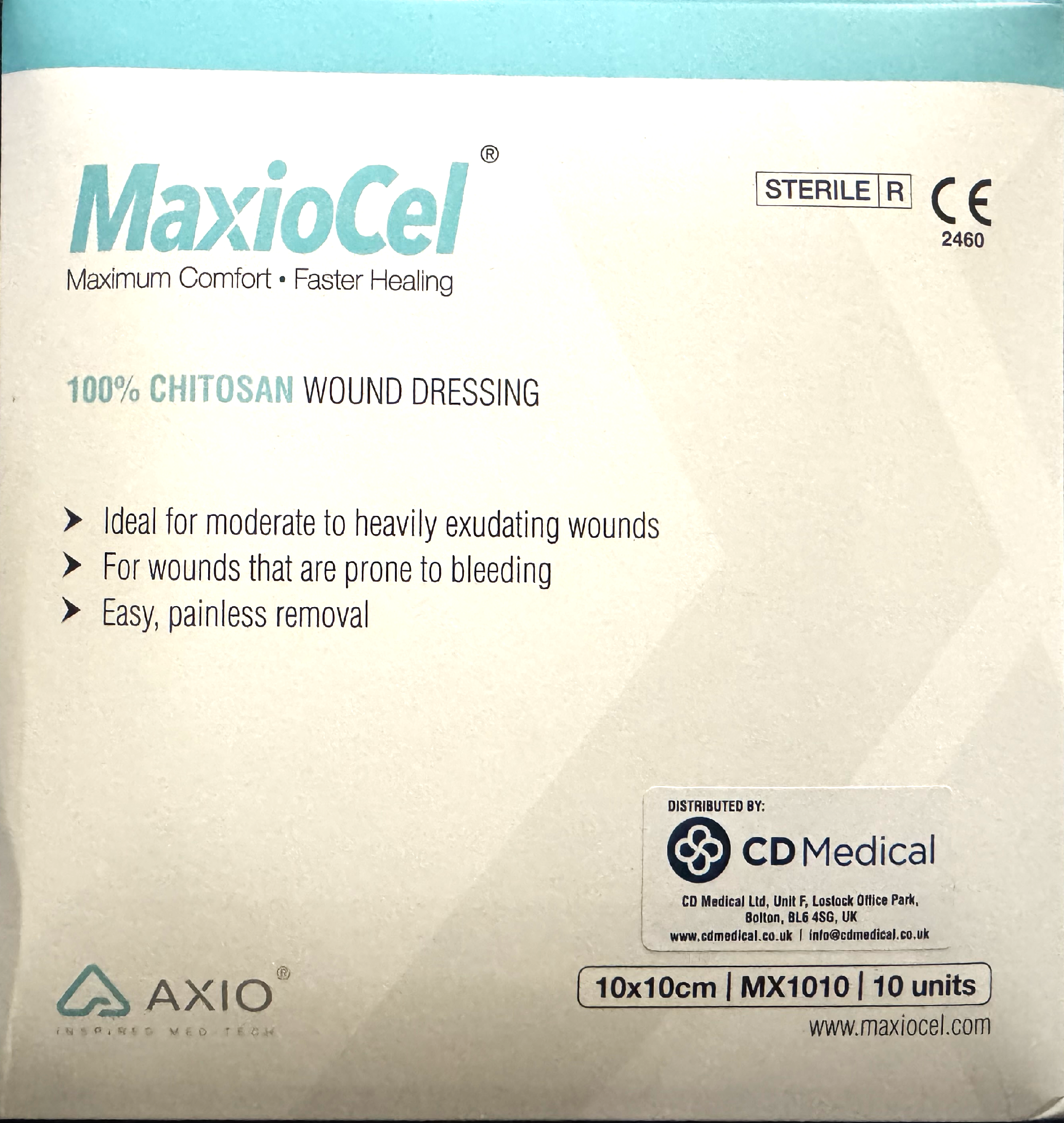 MaxioCel Chitosan Wound Dressing 10x10 cm Pack of 10 Units