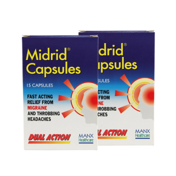 Midrid Migraine Relief is supplied in a convenient two-pack containing 30 capsules in total. Each capsule is designed for easy swallowing and provides a measured amount of active ingredients. Compact and practical, this pack is suitable for keeping at home or carrying while travelling.