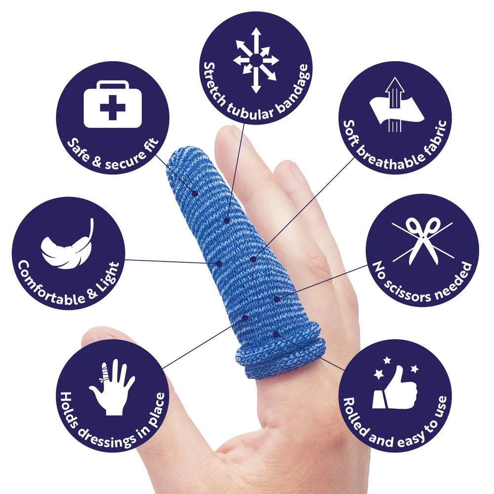 - Pack of 25 Snugfast Blue Finger Cots Buddies Tubular Bandage Dressings